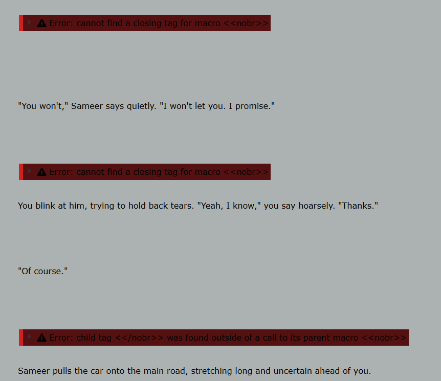 I'm really loving this game so far! I'm not usually a fan of text-based gaming, but this is fantastic! (Also, in Ep 1.... those feds. SPN ref?)